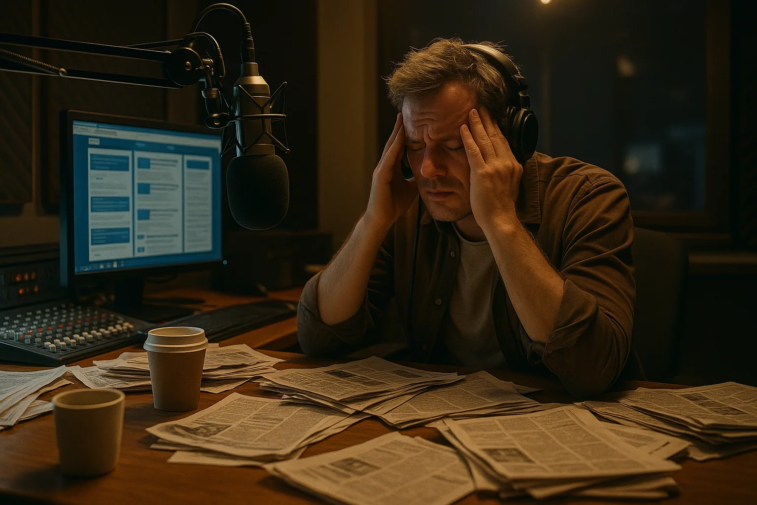 Let's be honest about what traditional show prep actually looks like. Industry research puts the number at 15+ hours per week for most radio personalities. That's not an exaggeration—it's the reality for anyone doing morning drive, afternoon shows, or any shift where content matters.