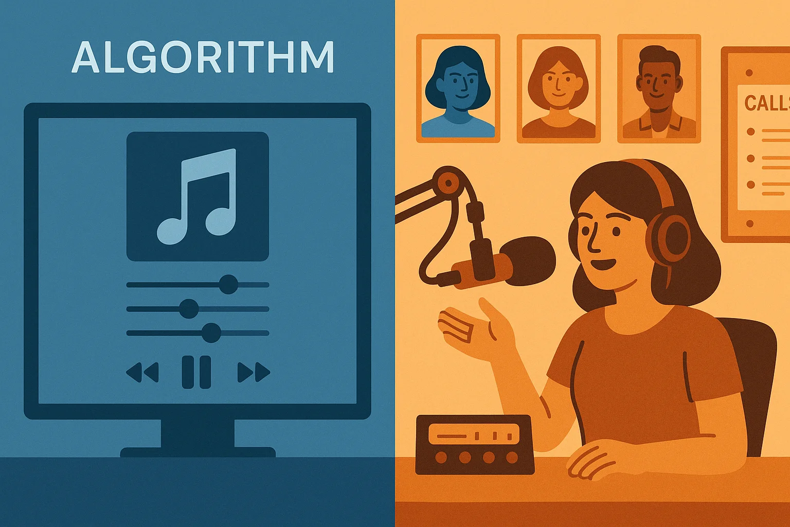 Think about the difference between hearing a great song on Spotify's Discover Weekly and hearing that same song introduced by a host who says, "This one reminds me of something — stay with me and I'll tell you why after the break." Same song. Completely different experience. One is consumption. The other is engagement.