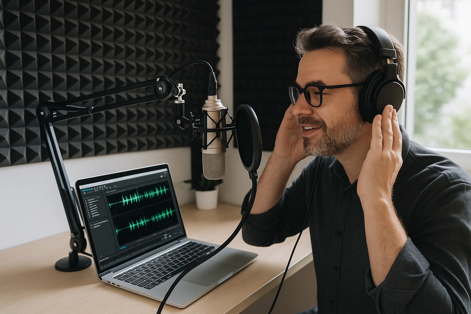 You don't need a $5,000 setup. Acoustic panels or heavy blankets on the walls behind you, a pop filter, and consistent mic distance get you 90% there. The production team handles the rest with processing.